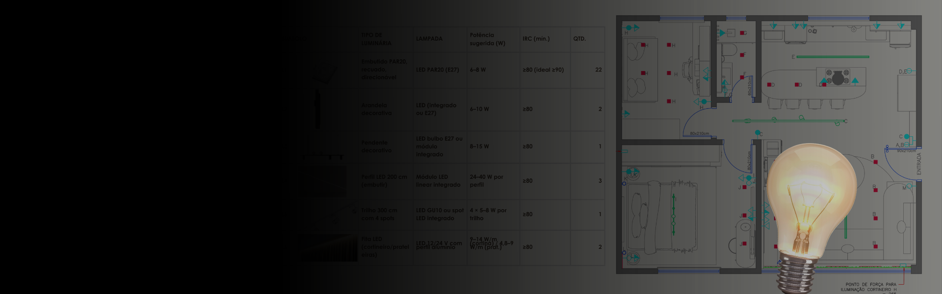 O curso cobre o processo completo da iluminação de interiores, do planejamento às escolhas técnicas de cada cômodo.